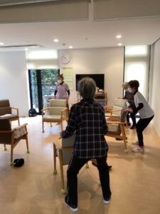 『令和7年11月10日(月)に「第6回てんとうむしクラブ」を開催しています。友田町・長渕地域から5名の方が参加され、開催にあたり体調を確認後、ストレッチ、重りを使用した運動、ステップ運動を実施しました。皆様何度も参加されており、理学療法士から指導を行うことで、より効果的に運動を行えるようになっています。ステップ運動においても、今回は移動しながらステップを踏む運動を行い、より複雑になっていますが皆様笑顔で取り組んで頂いています。来月の開催は12月8日に予定しています。』